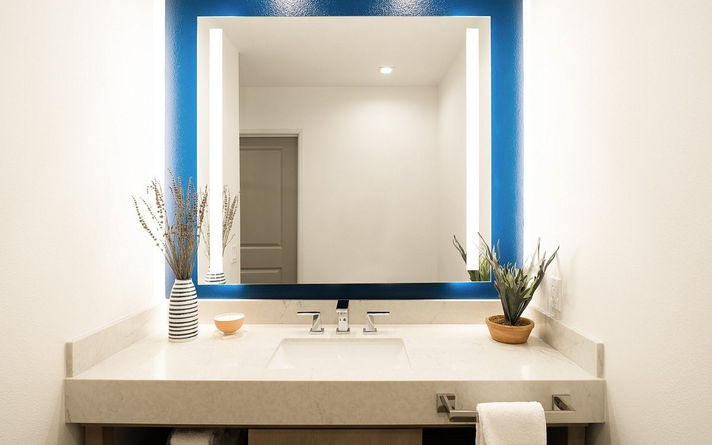 2CM Quartz Color 7111 with Eased Edges and Mitered Edge Vanities